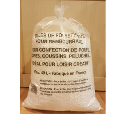 Sac de billes de polystyrène pour rembourrage 40L. Poids environ 400gr. Idéal pour confection de poufs, poires, coussins, peluches... Fabriqué dans...