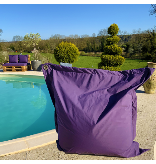 Big coussin LUXE Dimensions : 140x140 cm Ce pouf d'extérieur est décliné en coloris lavande, rouge, orange, jaune, vert anis, bleu turquoise,...